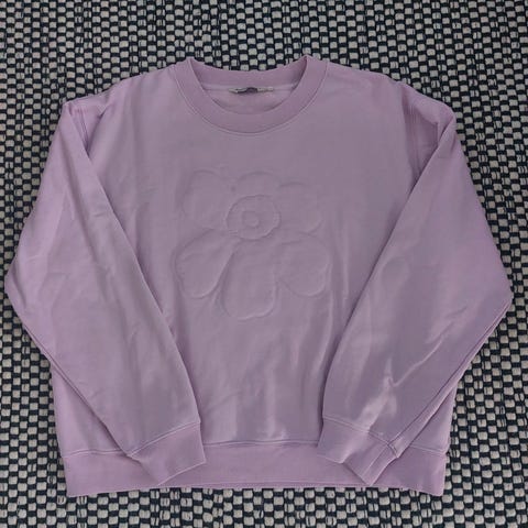 Marimekko naisten paita koossa M. Materiaalina puuvilla. Paidassa on kirjava, kukkakuvioinen kuosi vaalealla pohjalla. Pitkät hihat ja pyöreä pääntie. Soveltuu arki- ja vapaa-ajan käyttöön.
