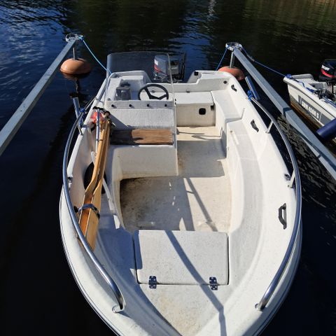 Hyvä Suvi 440 pulpettivene ja Honda 5hv perämoottori.veneseen pystyy laittamaan 20hv moottorin.alla oleva traileri on neuvoteltavissa myös mukaan.