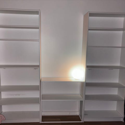 Kuvan kirjahylly ilman tavaroita