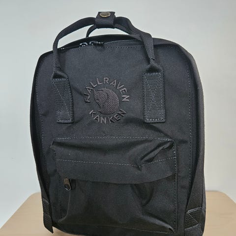 Hyväkuntoinen sininen Kånken reppu (normaalikokoinen eli 16 litraa) sateenkaarenvärisillä olkahihnoilla