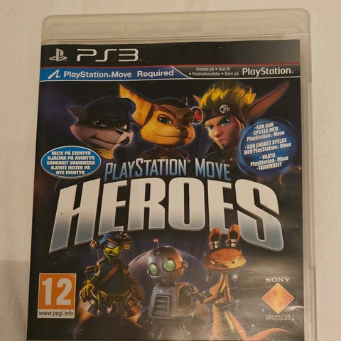 Sony PlayStation Move Heroes Playstation 3 -peli. Toimintaseikkailupeli, joka on suunniteltu käytettäväksi PlayStation Move -liikeohjaimen kanssa. Ikäraja PEGI 12. Pelissä on mahdollisuus pelata useilla eri hahmoilla ja se tukee yksinpelitilaa. Levyversio PS3-konsolille.