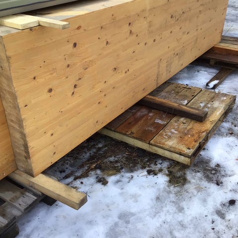 Ylimääräiseksi jäänyt liimapuupalkki 140x315 pituudeltaan 2810mm