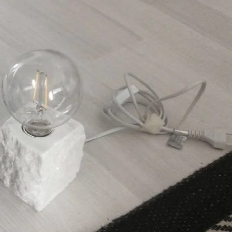 Itse koristeltu pöytälamppu liimaamalla kanojen sulkia ja höyheniä.