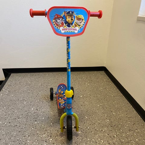 Paljon käytetty potkulauta, mutta toimiva vielä. Maalipinta kulunut.