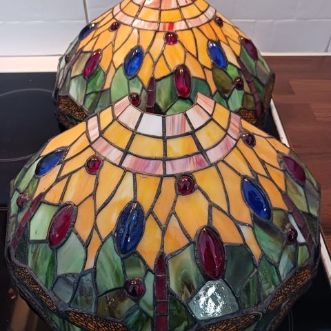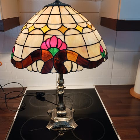Tästäpä pieni ja Nätti Tiffany tyylinen pöytälamppu. Pöytälamppu siaitsee Oulunkupeessa Kellon Kivieniemessä.
