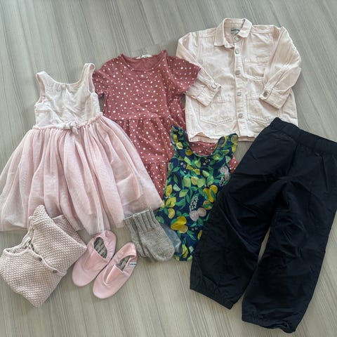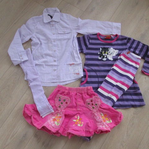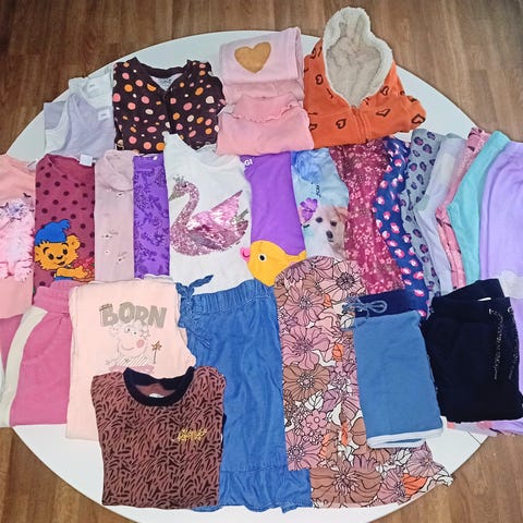 Arkivaatepaketti 116 cm vaatteita käyttävälle tytölle. Koot vaihtelee 110-116-128, mutta meillä olleet samaan aikaan eskari-ikäisen käytössä. Ehjiä, puhtaita ja siistejä.