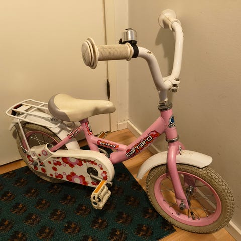 Myydään lasten 12" polkupyörä. Työntövarsi ja apupyörät saa halutessaan mukaan. Hp 50€