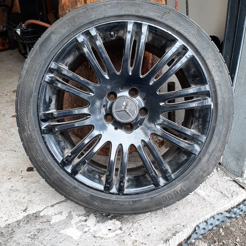 Mersun kesärenkaat vanteilla. On likaset ja vähän huonot kuvat. Ei suurempia kanttari osumia. Renkaissa pintaa 5-6mm ja tasaisesti kuluneet.