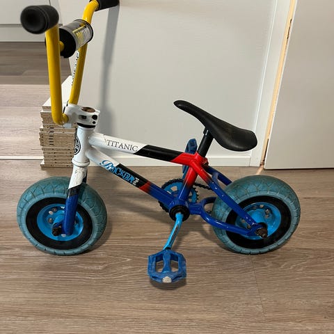 Wildcatin mini BMX pyörä. Vähän käytetty, mutta talvisäilössä hieman ruostepilkkua ilmestynyt. Ehjä, siisti ja hyväkuntoinen kuitenkin.
