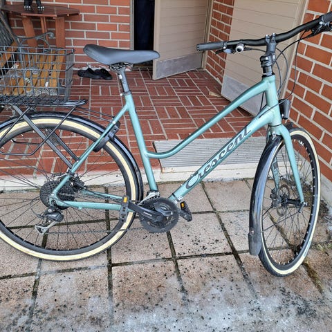 Hyvin vähän ajettu Crescent Skans 7-vaihteinen (Shimano) naisten kaupunkipyörä. Rungon koko 51 cm (sopiva 160-180 cm pitkille pyöräilijöille) ja 28" (37-622) renkaat. Väri valkoinen. Sopii kaupunki- ja arkiajoon. Pyörässä on matala runko helpottamaan kyytiin nousua, suora ohjaustanko, jalkajarru sekä käsijarru etupyörään. Lisäksi siinä on etuvalo, lukko, tavarateline ja seisontatuki. Pyörä on suunniteltu naiskuljettajalle, mutta sopii myös muille rungon koon puitteissa.