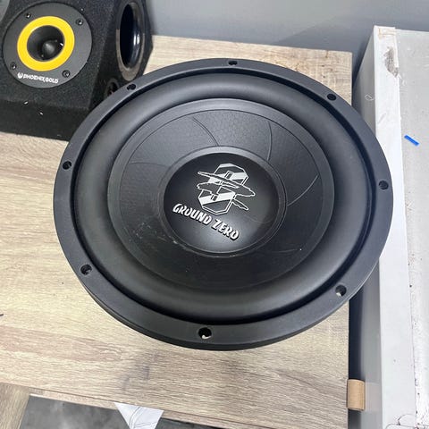 Ground Zeron valmis subipaketti, kalvossa pieni repeämä joka korjattu teipillä. Ei ole väljäksi huuatettu ja muutenkin yleisilmeeltään siisti. Vahvistimena gzba 300.2. Koekuuntelun voin järjestää