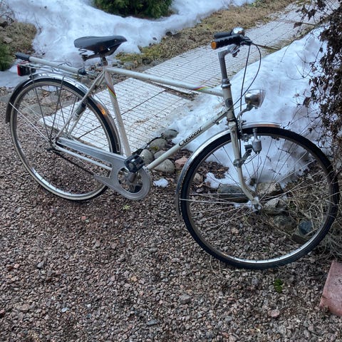 Pyörä muuten hyvässä kunnossa, mutta Shimanon Nexus 7 v takakeskiö vaatii kunnostusta tai vaihtoa. Keskiössä väljää/vaihteet eivät toimi. Vain nouto.