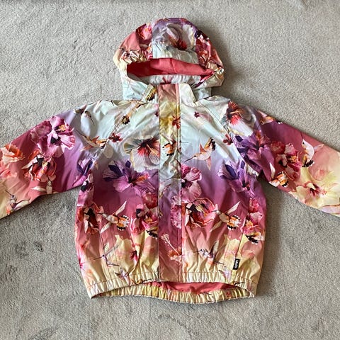 Tästä ihana välikausitakki seuraavalle käyttäjälle. Ostettu uutena ja ollut yhdellä tytöllä parempana takkina käytössä. Kunto kuin uusi, mutta haalea tummentuma takin kauluksen sisäpinnalla ( tästä kuva) joka tarkkaan syynätessä näkyy. Teipatut saumat ja hyvä vesipilari, joten pitää kuivana sateella.