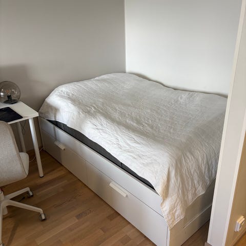 Valkoinen Brimnes 140 x 200 kokoinen sängynrunko.