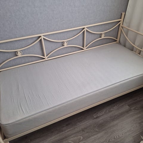 Siisti hyvin toimiva sälepohjainen sänky Patjan päällinen on uusi.Löytyy tarvittaessa 2 kpl Hita silloin yhteensä 200 €