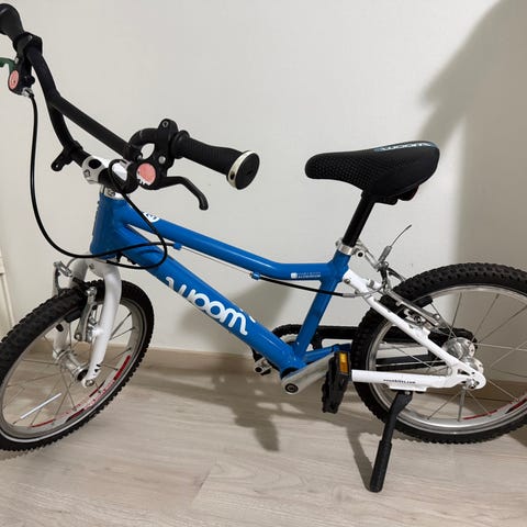 Hyvä ja kevyt lasten pyörä ajamisen opetteluun, vertautuu mielestäni nykyään suositumpiin Woom ja Frog pyöriin. Käyttäjiä on ollut jo muutama mikä näkyy siellä täällä jälkinä ja esim takalokarista on palanen lähtenyt kuten kuvistakin näkyy. Kaikki kuitenkin toimii ja huoltoakin on tehty, esim molemmat navat käytetty auki ja rasvattu hiljattain. Käsijarrut edessä ja takana.