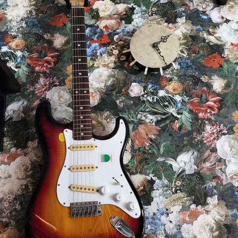 stratocaster mallinen Firefox sähkökitara, ollut vain koristeena, kielet hieman korkealla, japanissa valmistettu 80-luvulla