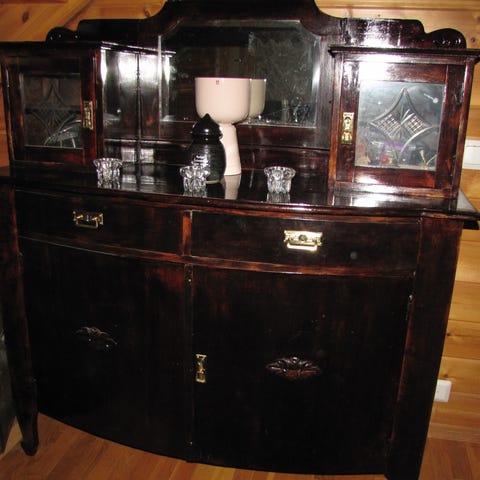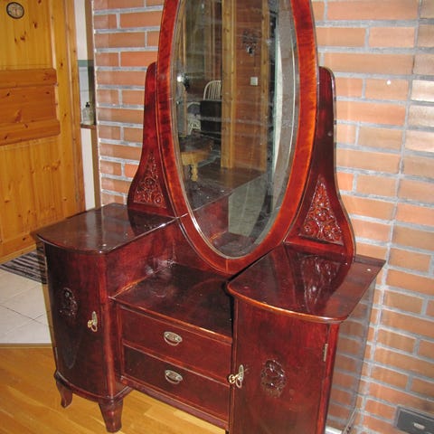 Suomessa 80-luvulla käsinvalmistettu peilipöytä / lipasto. Siisti, pientä kulumaa.