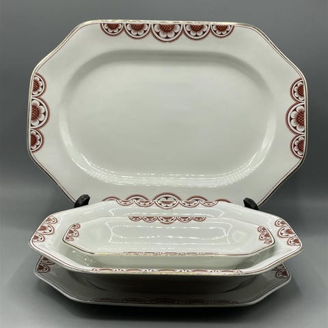 Kolme kaunista Arabia ARA Mainikki tarjoiluvatia, joissa on kukkakuviointi. Piippuleima.
