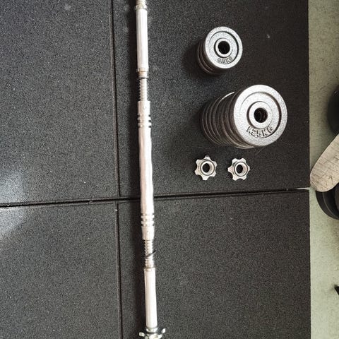 Gymstick säädettävä käsipainosetti, kokonaispaino 20 kg. Settiin kuuluu kaksi käsipainotankoa, useita levypainoja sekä kierrelukot.