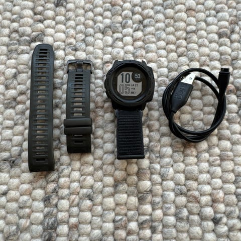 Garmin Forerunner 55 urheilukello mustalla rannekkeella. Ollut vähällä käytöllä, uudenveroinen. Mukana tulee latausjohto. Kello on tarkoitettu aktiivisuuden ja harjoittelun seurantaan.