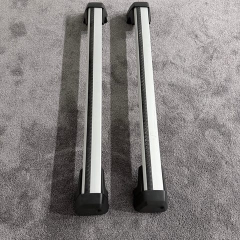 Myydään volvo xc60 vuosimallissa 2013 olleet lukittavat kattotelineet. Mukaan kuuluu 4kpl avaimia ja momentti avain. Väri harmaa niinkuin kuvista näkyy, kiskojen pituus 117cm