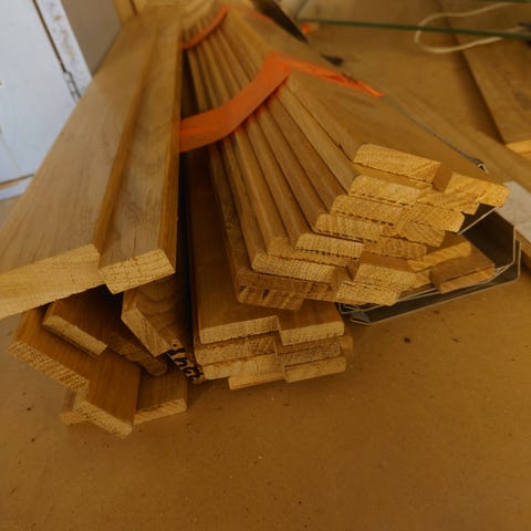 Metallisia listojas. Nipussa on useita erimittaisia, kullanvärisiä metallilistoja, joissa on uritettu pinta ja valmiita kiinnitysreikiä, osa tarrakiinnityksellä. Listat soveltuvat esimerkiksi oviaukkojen, kynnysten tai lattia- ja seinäpintojen viimeistelyyn ja suojaukseen sisätiloissa. Materiaali on metallia, pintakäsittely kullanvärinen. Pisin n. 97cm, suurin osa n. 85cm. Yhteensä 11kpl. Nouto Kuokkala, Jyväskylä.