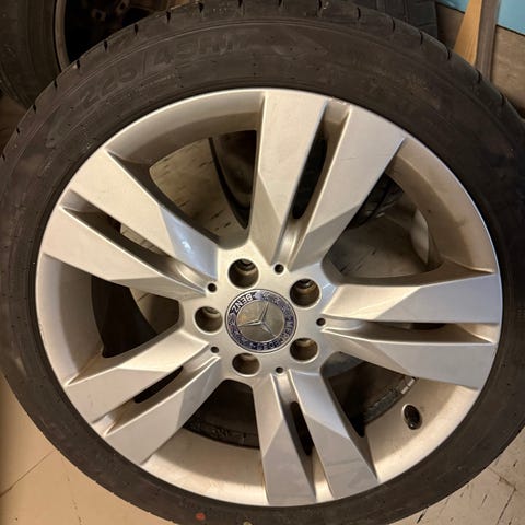 Mb vanteet huonoilla kesärenkailla, pintaa n. 2.5 mm. Vanteet suora ja kolhimattomat. 7 x 17 ET 47. Yhdessä vanteessa pieniä pintanaarmuja, menee kiillottamalla. Paineanturit mukana. Olleet C mersussa.
