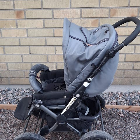 Etupuolella muovi rikki (näkyy kuvassa). Eturengas ei irtoa harmaata vapautusnappia painamalla. Saa irti ruuvaamalla ruuvit irti. Periaatteessa saisi käyttää pyörän perässä vain ilman etupyörää.