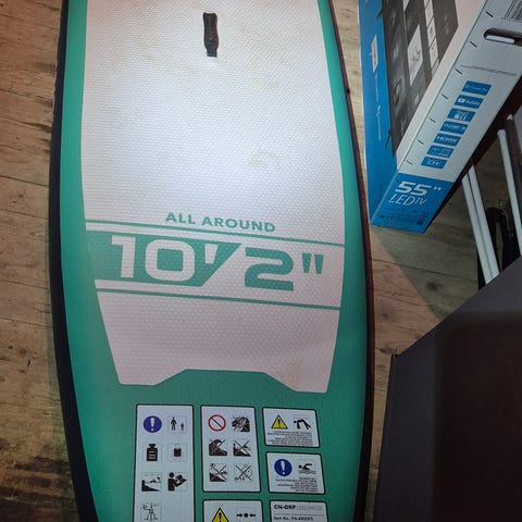 Ocean Edge ilmatäytteinen SUP-lauta. Pituus noin 2,95 m (9 ft 7 in) ja leveys 74 cm (29 in). Suositeltu enimmäiskuormitus 100 kg (220 lbs). Laudassa sinivalkoinen runko ja sininen seisonta-alue. Mukana säädettävä mela, pumppu ja kantoreppu. Soveltuu seisontamelontaan rauhallisissa vesissä.