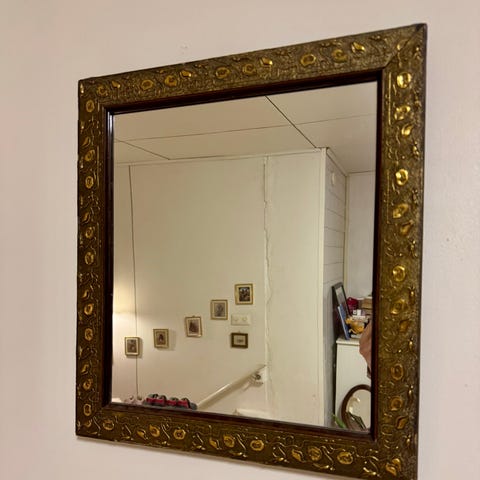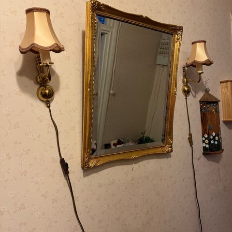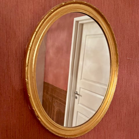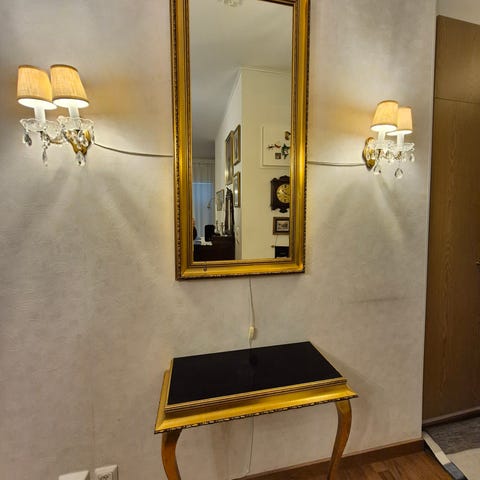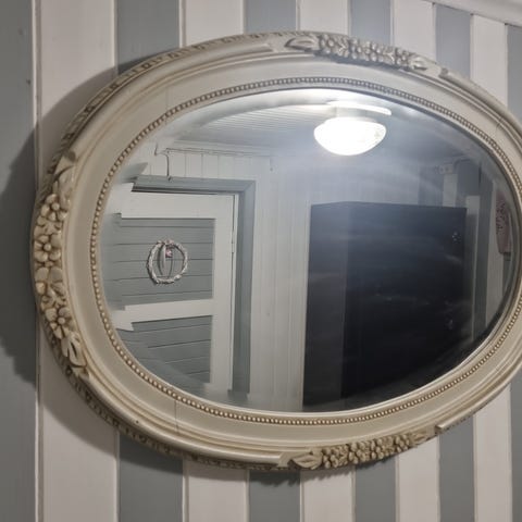 Ovaali puinen pöytä- / seinäpeili ruskea