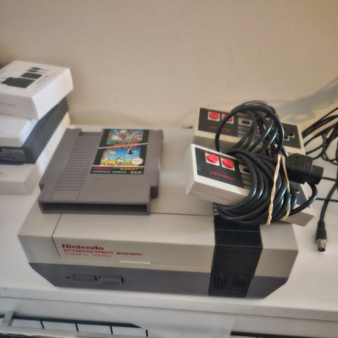 Alkuperäinen klassikko Nintendo 8-bit konsoli lisätarvikkeineen.