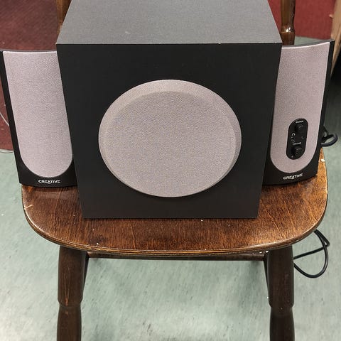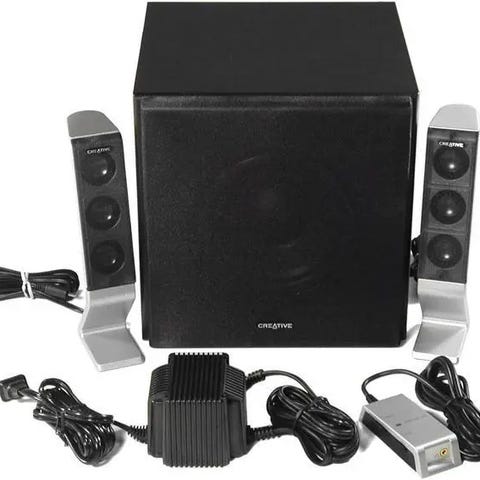 Creative 2.1-kaiutinjärjestelmä, jossa on yksi subwoofer ja kaksi satelliittikaiutinta. Väri on musta. Järjestelmässä on erillinen virtalähde ja liitäntä 3,5 mm audiokaapelille, joten se soveltuu esimerkiksi tietokoneen, kannettavan tai muun äänilähteen kaiuttimiksi. Mukana tulevat tarvittavat johdot kuvien mukaisesti.