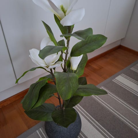 Vähällä käytöllä ollut tekokasvi lappu vielä kiinni