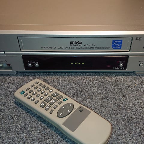 Toimiva VHS-videonauhuri (VCR), mallia 302. Mukaan myös alkuperäinen kaukosäädin.