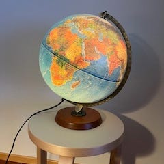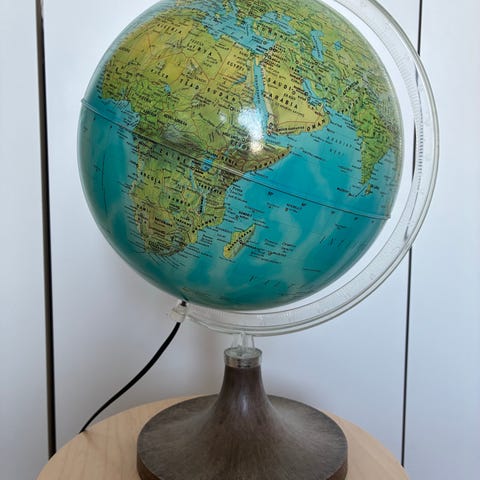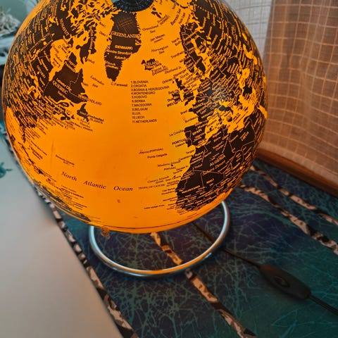 Scanglobe karttapallo. Sisällä lamppu. Noin 30v vanha. 40cm kotkea. Erittäin hyvin säilynyt.