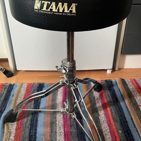 Tama rumpujakkara. Pyöreä, musta istuinosa, jossa keinonahkaverhoilu. Kromattu, kolmijalkainen jalusta. Sopii rumpusetin soittoon ja muuhun istumakäyttöön soittotilassa tai studiossa.