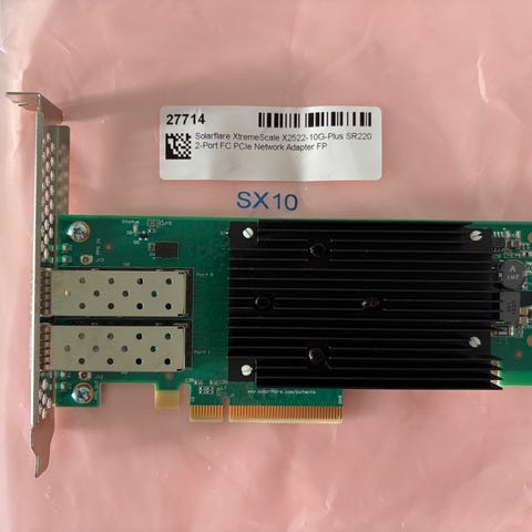 8x PCIe paikkaan laitettava kupari Ethernet liitäntää käyttävä verkkokortti, 2 x 10 gigan liitäntää.