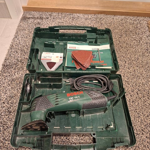 Vähän käytetty Bosch PMF 180 E monitoimityökalu erilaisiin sahaus-, hionta- ja kaavintatöihin. Mukana kuljetuslaukku ja 5 terää, hiomalevy sekä hiomapapereita.