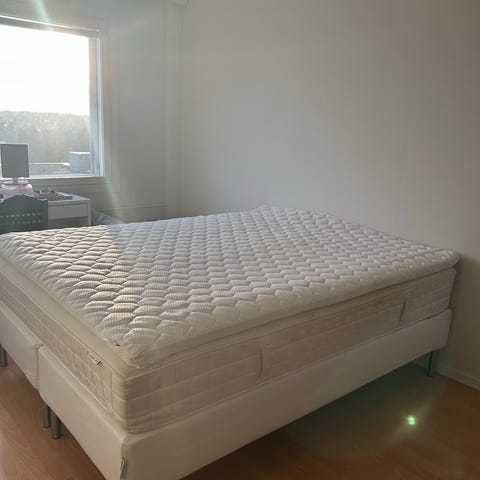Jyskin jenkkisänky harmaalla verhoilulla. Sängyssä on kaksi erikovaa runkopatjaa, joista toinen on medium- ja toinen hard-kovuudella (MA 22 -malli). Mukana tulee puiset tummanruskeat sängynjalat ja sängyn pääty. Sänky on hyvässä kunnossa. Koiratalous. Runkopatjan suojakankaassa pentukoiran pissan jättämä läikkä. Mitat: 160x200cm