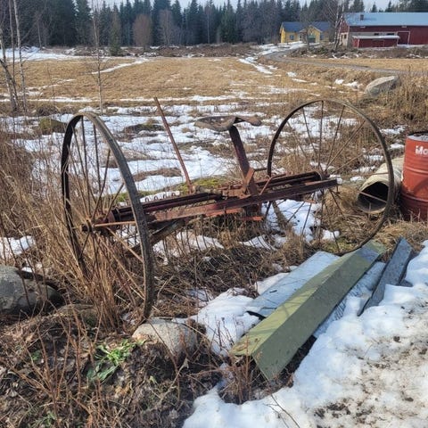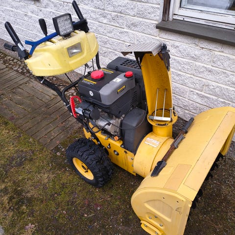Sarvitraktori sai uuden omistajan, joka ei tarvinnut linkoa. Laitetaanpa linko sitten erikseen myyntiin, lunta on tulossa varmasti tyyliin kahdeksan kuukauden päästä. Hihnan kiristimen kytkevä tanko on mukana, torven kääntöön pitää tehdä uusi pitkävartinen kampi. Lingon kiinnike sopii suoraan ainakin F800:n etukytkentään, ja lingon hihnapyörä oli linjassa sarvitraktorin siivapyörän kanssa. Vähän asian vierestä, F800 sarvitraktoriin sopivia siivapyöriä on suunnitelmissa sorvauttaa lisää. Lingon kuljetuksesta ja sen kustannuksista voidaan tarvittaessa sopia erikseen. Toisessa kuvassa linko "heftissä" F800:ssa, lisää kuvia tulossa pikapuoliin.