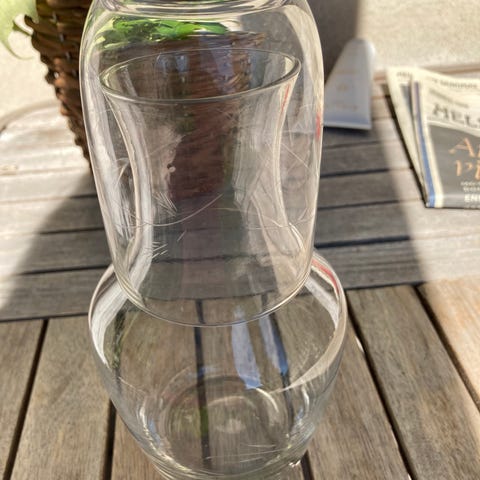 lasinen säilytysastia + korkki kork 20cm lev 17cm