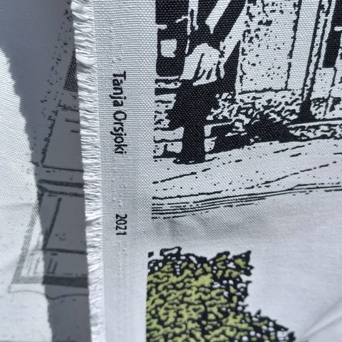 Hakusanat: Erik Bruun, Vallila, verho, verhot, kangas, kankaat, kuosi, joutsen, joutsenet
