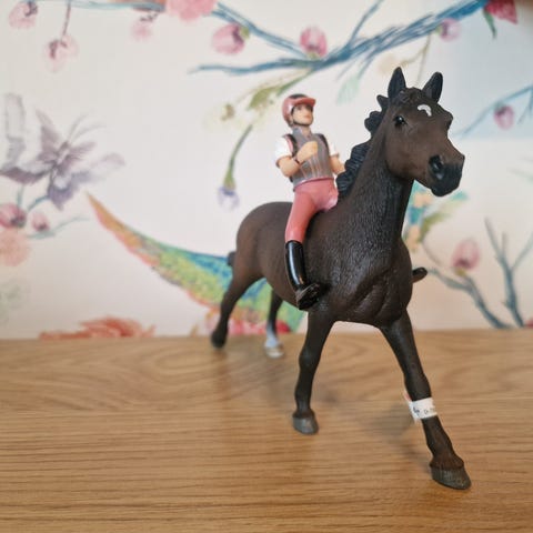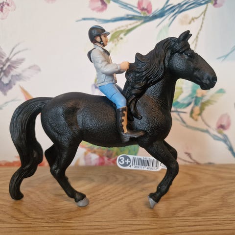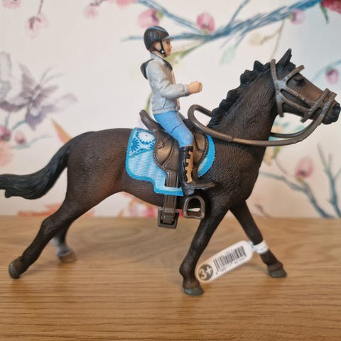 2026 uutuus Schleich hevonen, satula ja suitset. Papo ratsastaja Emma