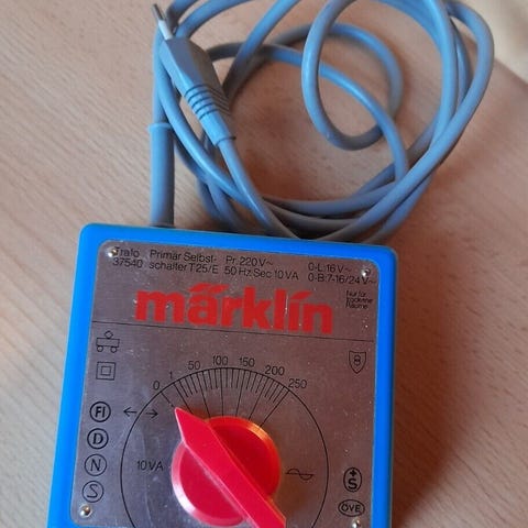 Myydään ylimääräinen muuntaja Fallerin pienoismallien moottorien pyörittämiseen. Muuntajassa 16V AC, 12V DC sekä 5V DC-kytkennät.