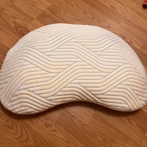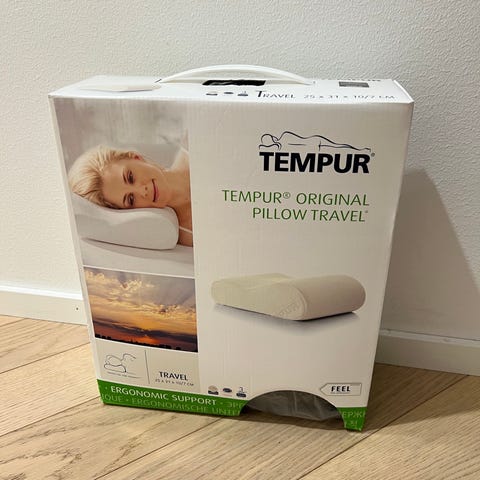 Tempur ergonominen tyyny koko S. Päällinen pesty, mutta näkyvä tahra. Tyyny säilyttänyt muotonsa.