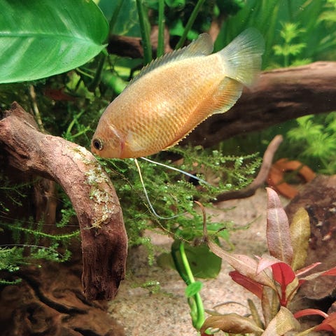 5-6 cm, iästä tai sukupuolesta ei tietoa. Kyseessä ei ole kuvan kala.