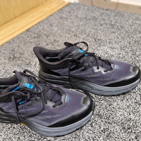 6,5 km juostut hokan speedgoat 7. Koko 42 2/3 wide. Tulikin ostettua liian pienet joten joutaa yhden kokeilulenkin jälkeen myyntiin.
