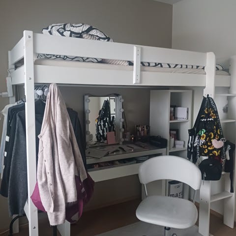 IKEA SMÅSTAD parvisänky työpöydällä ja vaatekaapilla valkoinen