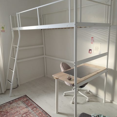 Sänky ostettu noin viisi vuotta sitten. Nykyiseen Ikean malliin verrattuna vaatekaapin alapuolella ei ole erillistä laatikkoa vaan ovi on yhtenäinen. Muuten parvisänky vastaa nykyisen ilmoituksen tietoja.